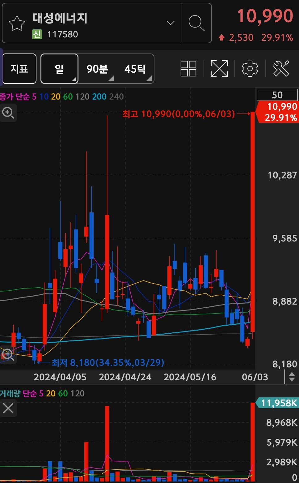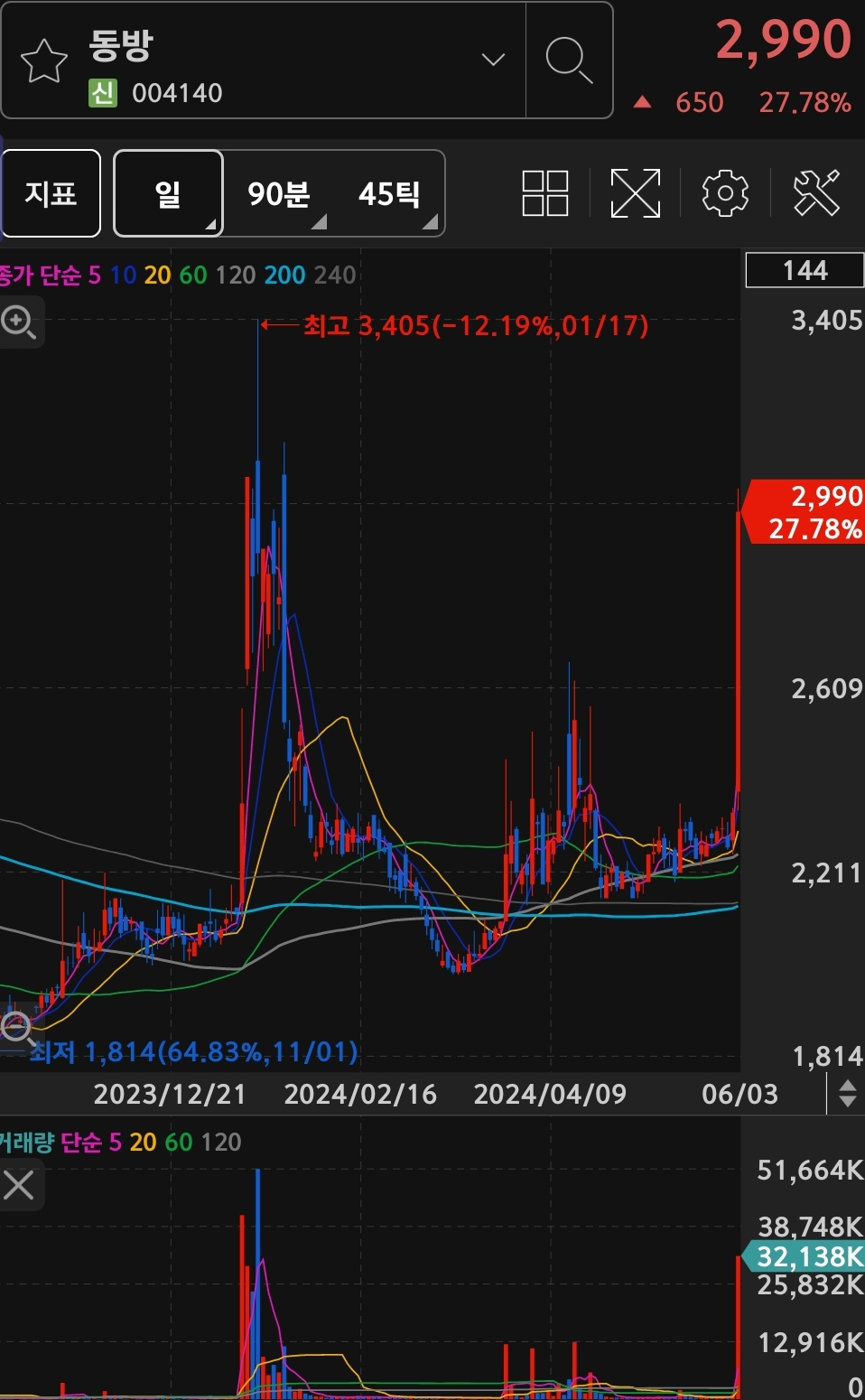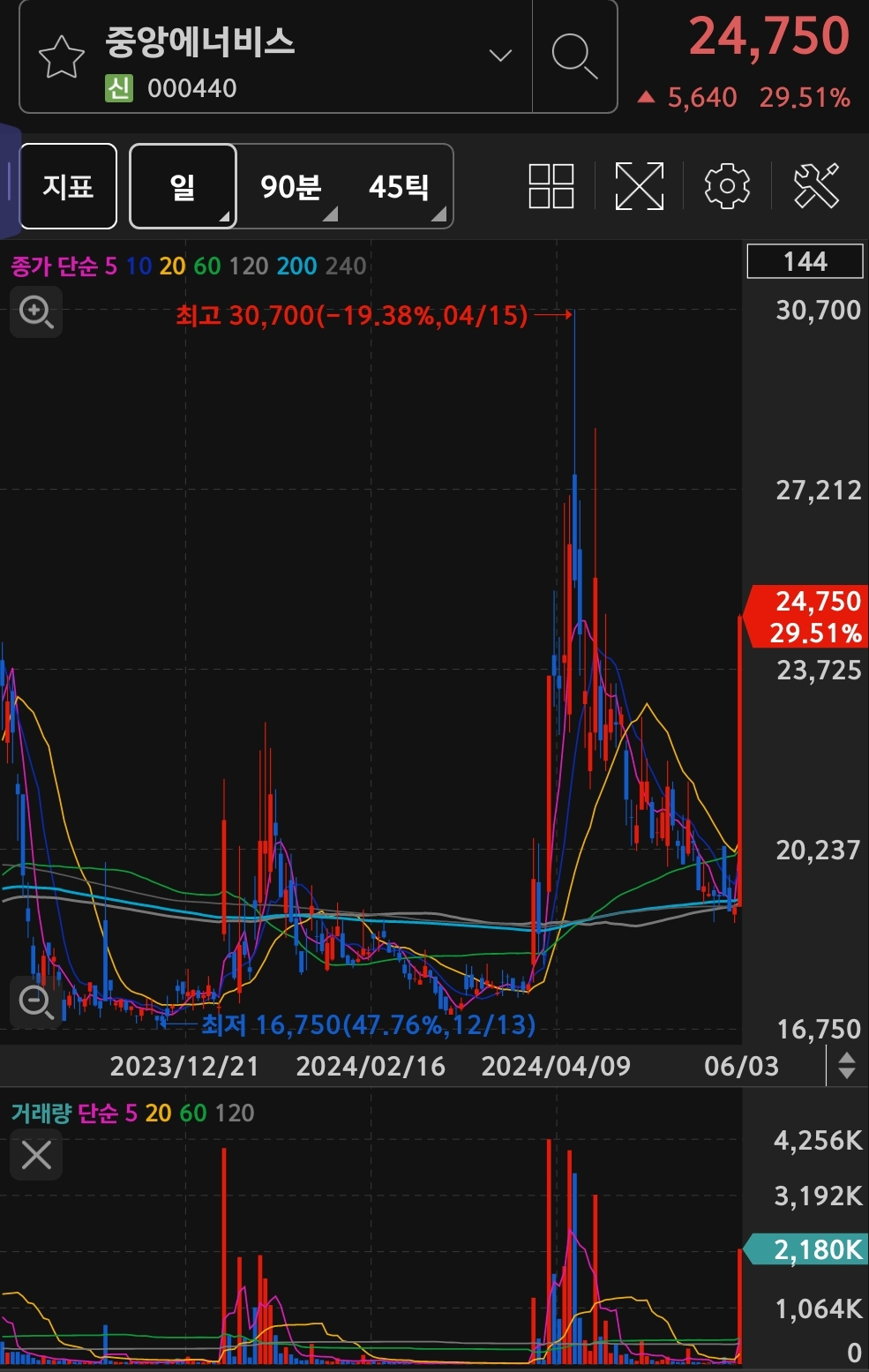 전일 대비 29.98% 17,950원에 상한가에 거래 마무리 되었습니다.